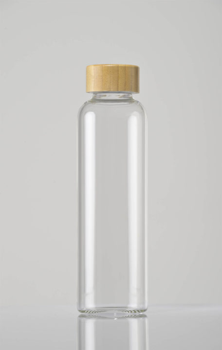 Eine Wasserflasche mit auslaufsicheren Deckel produziert aus Borsilikatglas mit einem